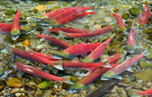 Salmon hatch from eggs in streams. They are born quite small and after a time have an urge to swim